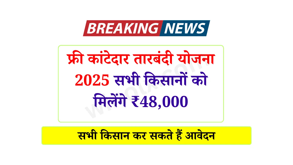 Free Tarbandi Yojana 2025: राज्य सरकारों तथा केंद्र सरकार की ओर से किसानों के लिए समय-समय पर अनेक प्रकार की नई कल्याणकारी तथा लाभकारी योजनाओं का संचालन किया जाता है, ऐसे में वर्तमान समय में किसानों को खेत के चारों ओर बाड़ लगाने के लिए सरकार की ओर से कांटेदार तारबंदी योजना की शुरुआत की गई है, जिसमें किसानों को अपने खेत के चारों ओर अपनी फसल को आवारा पशुओं से सुरक्षा देने के उद्देश्य से कांटेदार तारबंदी लगवा सकते हैं इसके लिए सरकार की ओर से आपको 45,000 रुपए की आर्थिक सहायता प्रदान की जाती है।