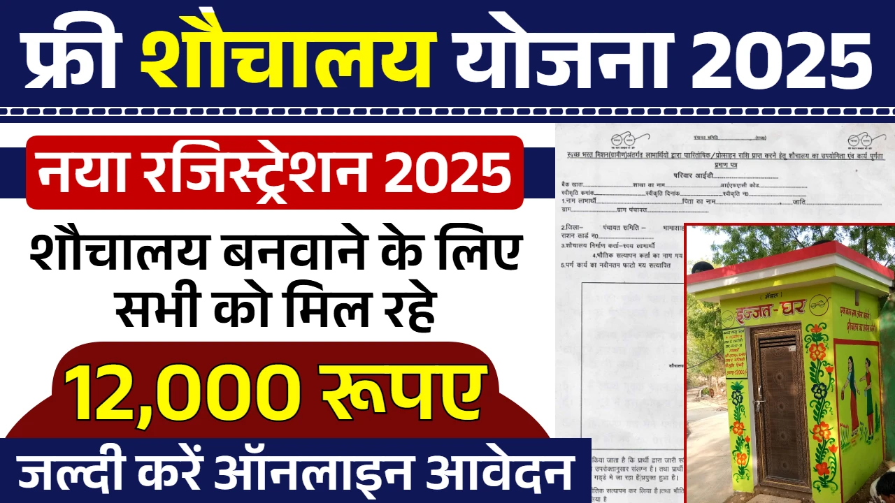 फ्री शौचालय योजना को देश की सरकार के द्वारा स्वच्छ भारत मिशन के तहत आरंभ किया गया है। आपको हम बताते चलें कि इस योजना के माध्यम से सरकार आर्थिक रूप से कमजोर सभी परिवारों को 12000 रूपए की सहायता करती है।